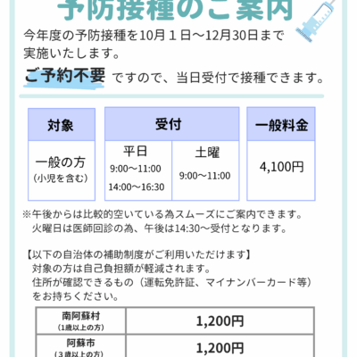 医師により診療時間や予約状況が異なりますので詳しくは受付へお尋ねください。