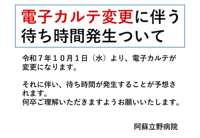 令和7年10月1日(水)より電子カルテのシステムを新しいものへ切り替えをいたします。